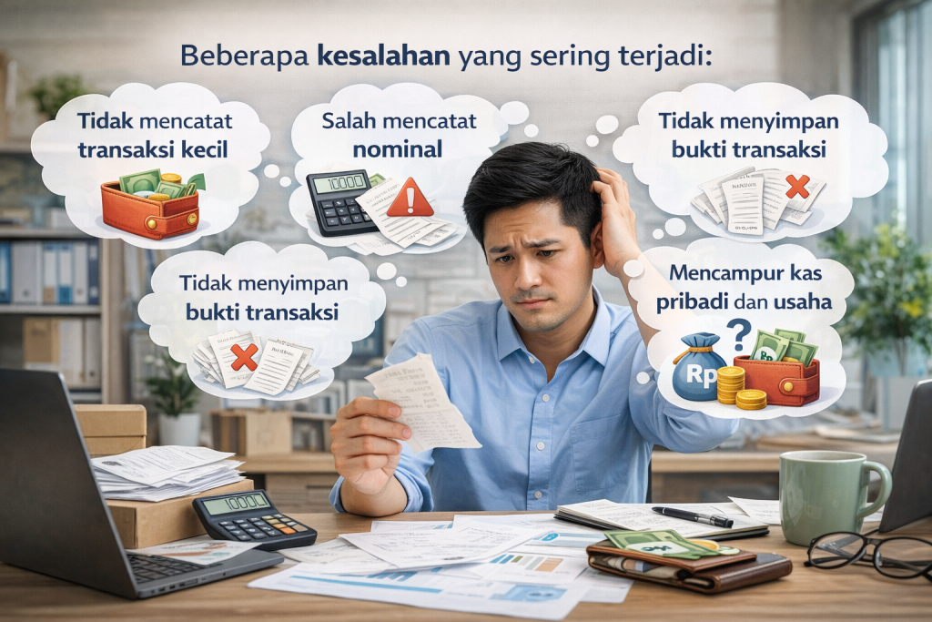 Salah satu masalah utama dalam usaha kecil adalah tercampurnya keuangan pribadi dan usaha. Pencatatan kas yang disiplin membantu memisahkan kedua jenis keuangan tersebut secara lebih jelas.